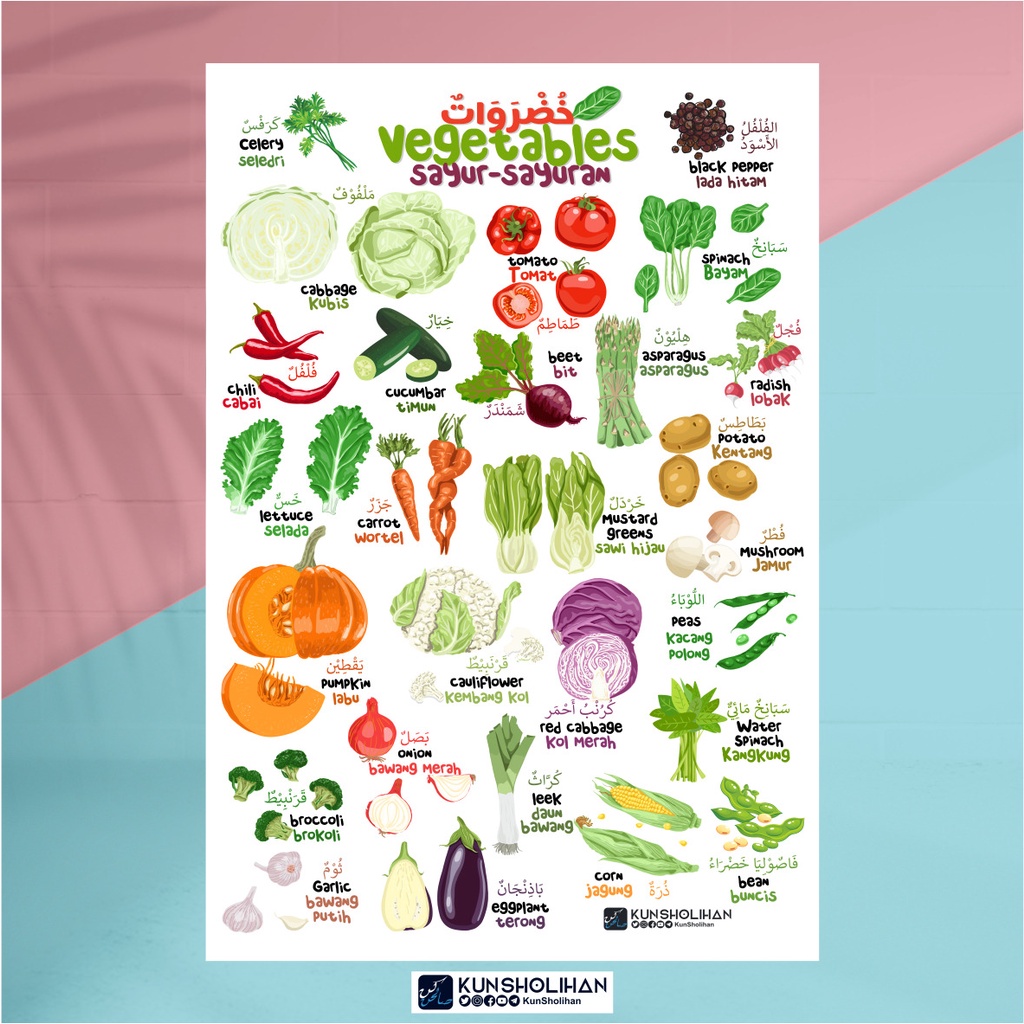 Jual Poster Vegetables Khudrawatun Sayuran 3 Bahasa Kun Sholihan Indonesia Shopee Indonesia